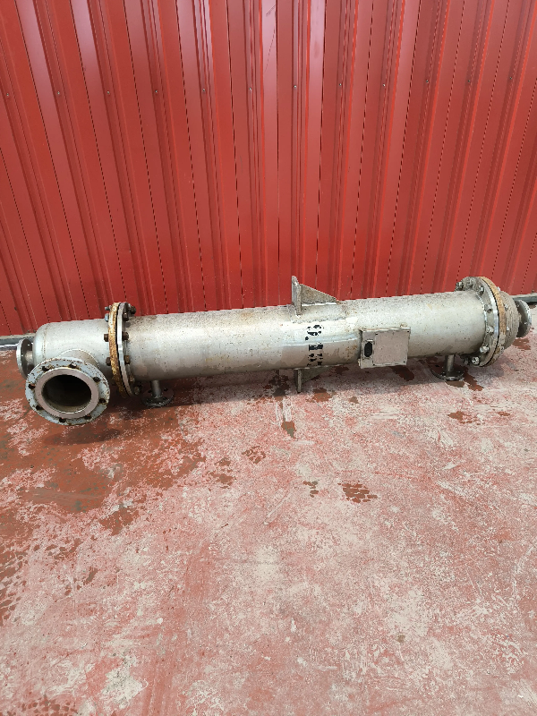Échangeur de chaleur tubulaire en acier inoxydable avec une surface d'échange de 1,6 m².Connexions : - Latérales : DN100 - Inférieure : DN80 - Supérieure : DN80 - Référence : C14104