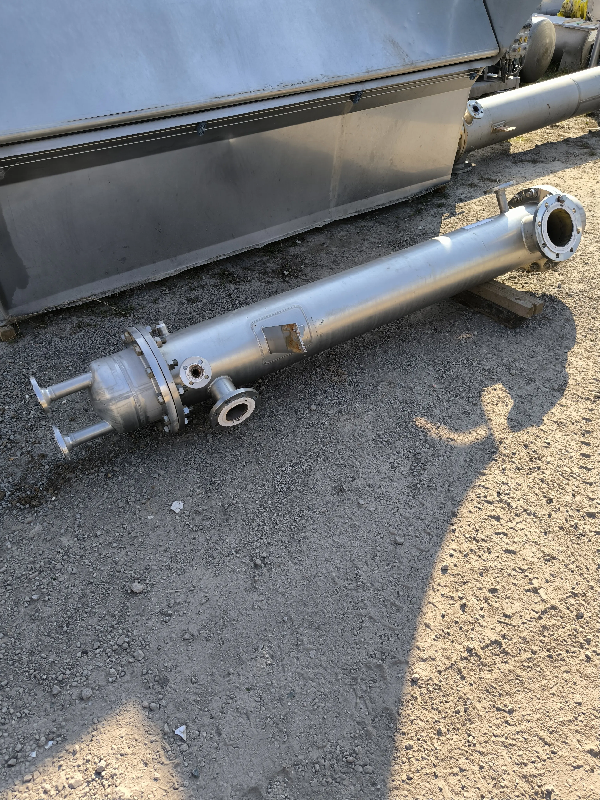 Echangeur de chaleur tubulaire d'occasion en inox, d'une surface d'échange de 10 m2. Nouveau matériau de joint : Klinger de 3 mm d'épaisseur - Référence : C13369