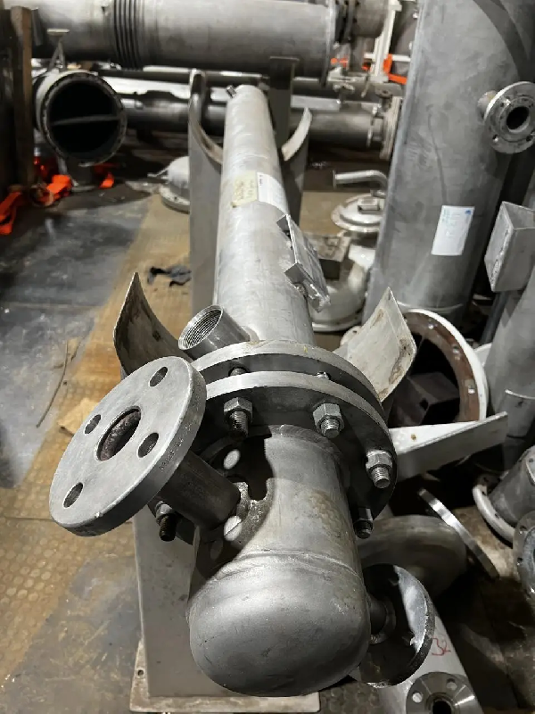 Echangeur tubulaire en inox avec 1 passage dans la calandre et 2 passages dans les tubes.