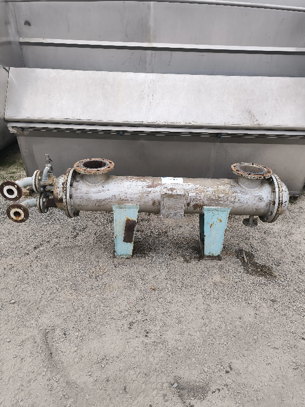 Echangeur de chaleur tubulaire d'occasion en inox, d'une surface d'échange de 10 m2. Nouveau matériau de joint : Klinger de 3 mm d'épaisseur - Référence : C13369