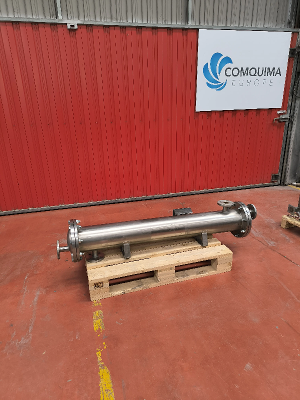 Référence : - C13633 - Échangeur de chaleur tubulaire en acier inoxydable 316. Année 1977. - Caractéristiques : - Pression de calcul du corps : 15,6 kg/cm² - Pression d'essai : 23,4 kg/cm² - Température de conception : 113 ºC - Pression de conception du tuyau : 12,4 kg/cm² - Pressi
