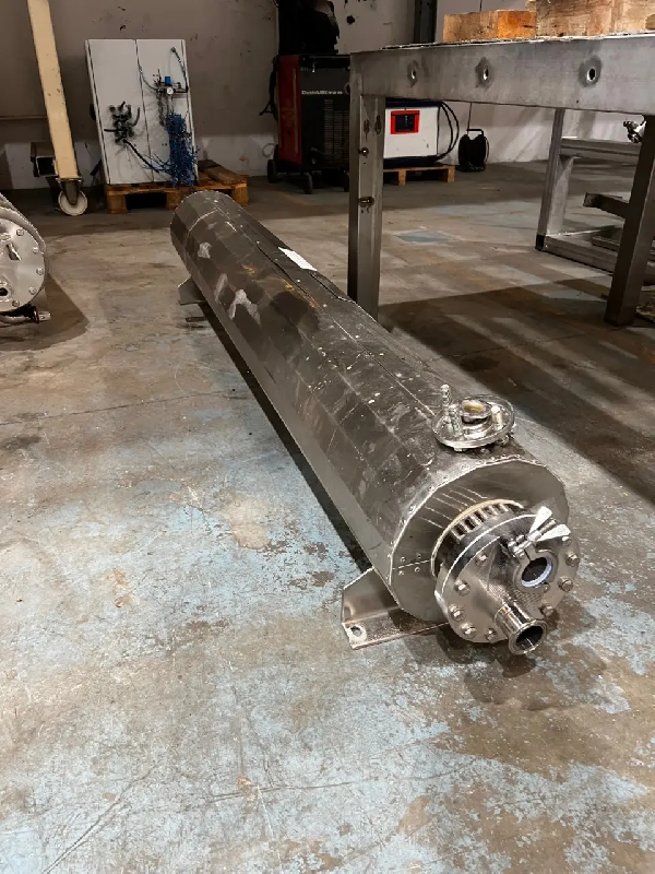 Echangeur de chaleur tubulaire d'occasion en inox, d'une surface d'échange de 10 m2. Nouveau matériau de joint : Klinger de 3 mm d'épaisseur - Référence : C13369