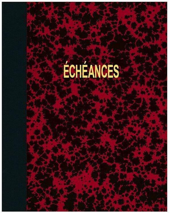 Registre échéancier à couverture souple en carte lustrée. Titre frappé or. Impression encre bleue avec filets rouges et violets sur papier offset 80g/m2. Les mois de l'années sont inscrits sur des touches encollées 2 faces pour plus de solidité. - Délai de livraison : 7 - 9 jours ouvrés