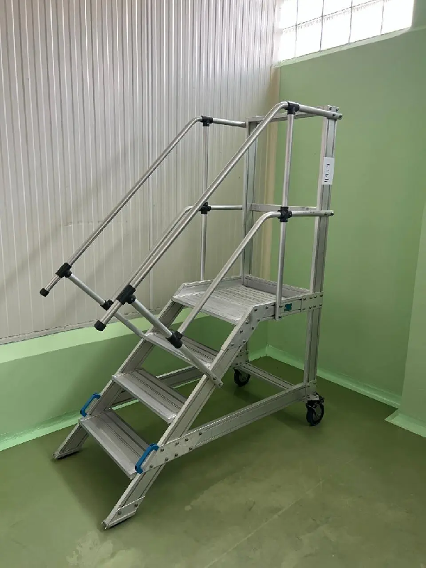 Echelle sur roulettes d'occasion. Dimensions de la dernière marche : Longueur de la marche supérieure 600 mm Largeur de la marche supérieure 600 mm Hauteur de la marche supérieure 820 mm
