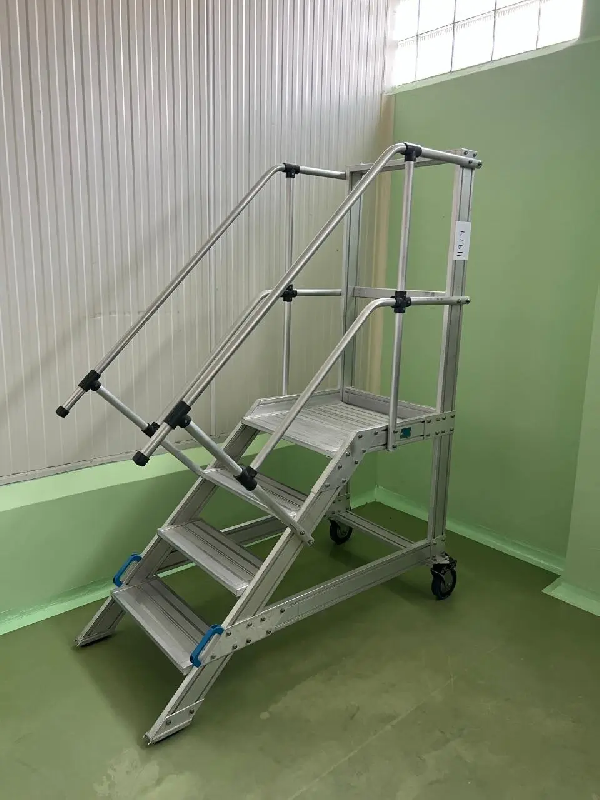 Accès camion - citerne en toute sécurité. Sur roues pour se positionner puis mise en toute stabilité à l'aide des béquilles de nivellement. - Différentes configuration possibles (Hauteur réglable - dimensionnement du garde - corps,…) - Structure en aluminium et châssis en acier peint p