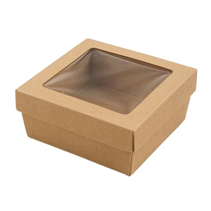 Ecolomique - 25Pcs - Boîte Kray carrée carton brun - 85x85x40mm, avec couvercle à fenêtre - ECO210KRBAK85K - marron en carton ECO210KRBAK85K