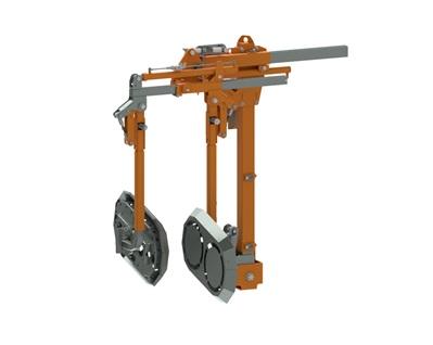 Adaptation paroi de feuillage : - • Inclinaison latérale man. des deux têtes d'effeuilleuse - • Détection des rangs par parallélogramme amorti par pression de gaz