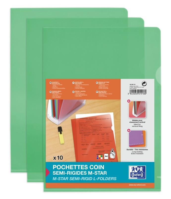 ELBA OXFORD Lot de 10 Pochettes-Coin M Star A4 PVC Lisse Epaisseur 15/100ème Vert - 3045050019180