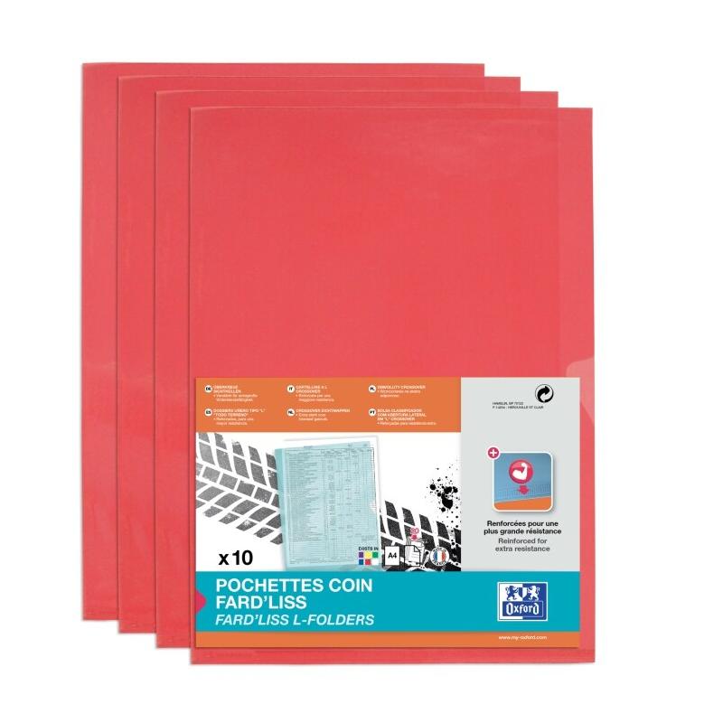ELBA OXFORD Sachet de 10 Pochettes-Coin Fard'Liss A4 PVC Lisse Epaisseur 20/100ème Rouge - 3148240000262