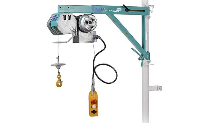 Structure tubulaire en acier galvanisé formant une poutre triangulaire et assurant une excellente stabilité sous la charge. - Caractéristiques principales : - Installation simple et rapide avec dispositif d’autorelevage. - Embase : avec fin de course bas et treuil intégré. - Charge utile