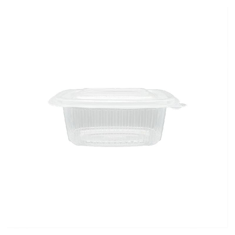 Emballage alimentaire 1500ml rPET w/Cap 50un Emballage rectangulaire en rPET. - 100% recyclé. - Avec couvercle à charnière. - Très transparent, hermétique et incassable. - Spécialement conçu pour les produits précuits, les noix et les bonbons. - Adapté au contact alimentaire - Durée