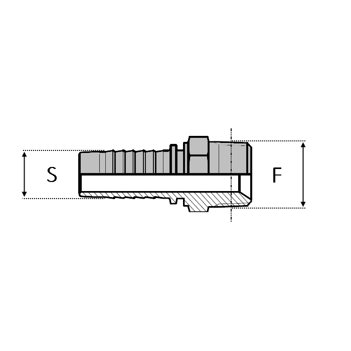 Caractéristiques : - DESIGNATION : S 04 MJI 7/16 - S (int. Tuyau) Module : 3.0 - S (int. Tuyau) Inch : 3/16" - S (int. Tuyau) mm : 4.8 - F (inch) : 7/16 - F (mm) : 11.11 - Norme 1 : SAE J516/J514 -