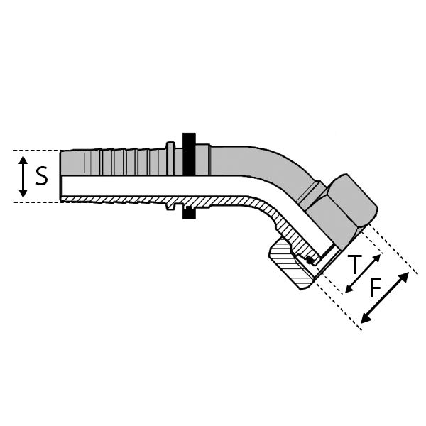 Caractéristiques : - DESIGNATION : S 06 FCAO 08L 90 CT - S (int. Tuyau) Module : 4.0 - S (int. Tuyau) Inch : 1/4" - S (int. Tuyau) mm : 6.35 - F (mm) : M14X150 - T (mm) : 8.0 -