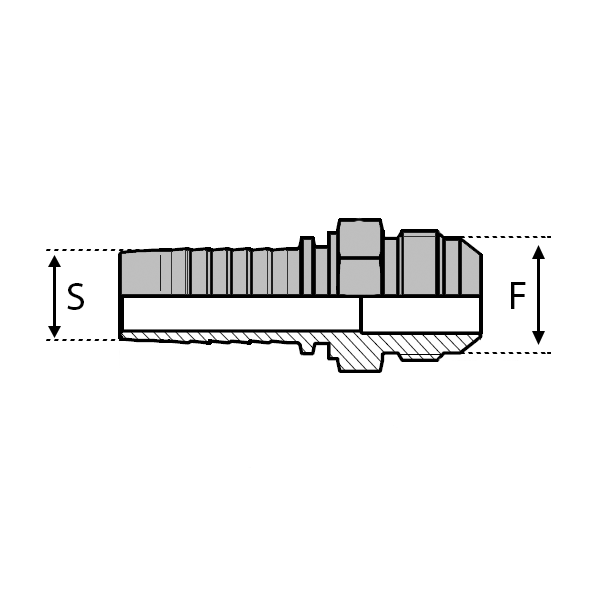 Caractéristiques : - DESIGNATION : S 10 MSAE 7/8 TOURNANT - S (int. Tuyau) Module : 6.0 - S (int. Tuyau) Inch : 3/8" - S (int. Tuyau) mm : 9,5 - F (inch) : 7/8 - F (mm) : 22.22 - Norme 1 : SAE J516/514 - USP 1 : Avec joint O - ring -