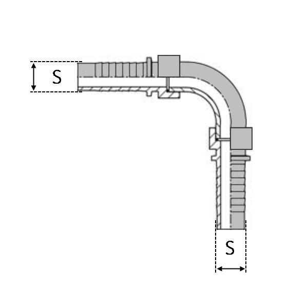 Caractéristiques : - DESIGNATION : IN 19 FJI 1"1/16 90 DKJ - Module : 12.0 - S (int. Tuyau) Inch : 3/4" - S (int. Tuyau) mm : 19 - Dim. Filetage : 1"1/16 - Dim D.I : 24.69 - Dim. F/p : 12.0 - Dim. Pas : 2.116 - Norme 1 : SAE J516/514