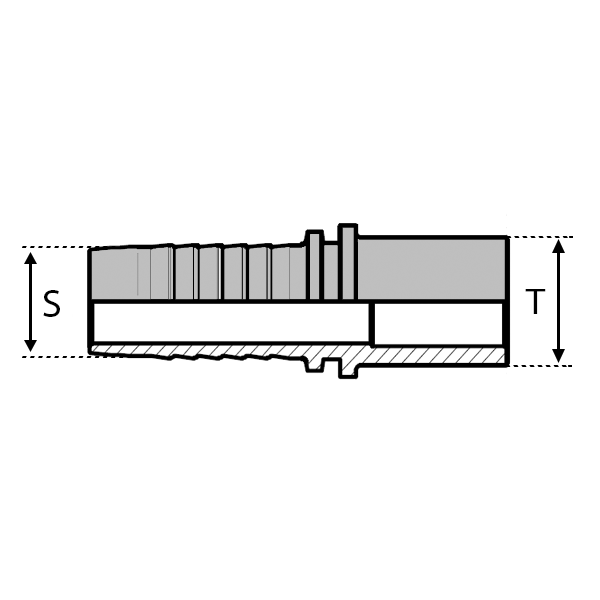 Caractéristiques : - DESIGNATION : S 06 ELG 13 45 - S (int. Tuyau) Module : 4.0 - S (int. Tuyau) Inch : 1/4" - S (int. Tuyau) mm : 6.35 - T (mm) : 13.25