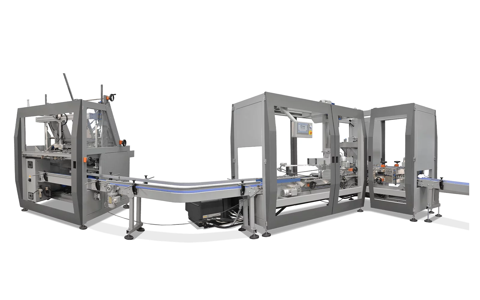 Les encaisseuses horizontales à chargement latéral GEOS sont compatibles avec les caisses américaines pré - encollées RSC ou HSC. Ces machines offrent un processus efficace et innovant pour le conditionnement de produits unitaire ou en lots. - Encaisseuse GEOS ouvre, remplit et ferme aut