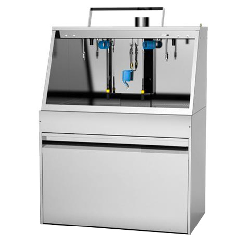 Caractéristiques - NETTOYAGE MANUEL - Poste individuel de nettoyage - Nettoyage avec des solvants écologiques ou inflammables - Fonctionnement Pneumatique - Une brosse autoalimentée et actionnée par la pompe pneumatique - Structure 100% en acier inoxydable - Solvant de nettoyage utilisé