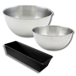 Ensemble avec 1 Moule à Cake 25,5cm, 1 spatule Zenker et 2 bols à mixer en inox Fackelmann - noir métal 3176239936322