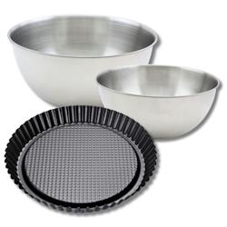 Ensemble comprenant 1 moule à tarte renversée 30 cm, 1 spatule Zenker et 2 bols à mixer en inox Fackelmann - noir métal 3176239936391