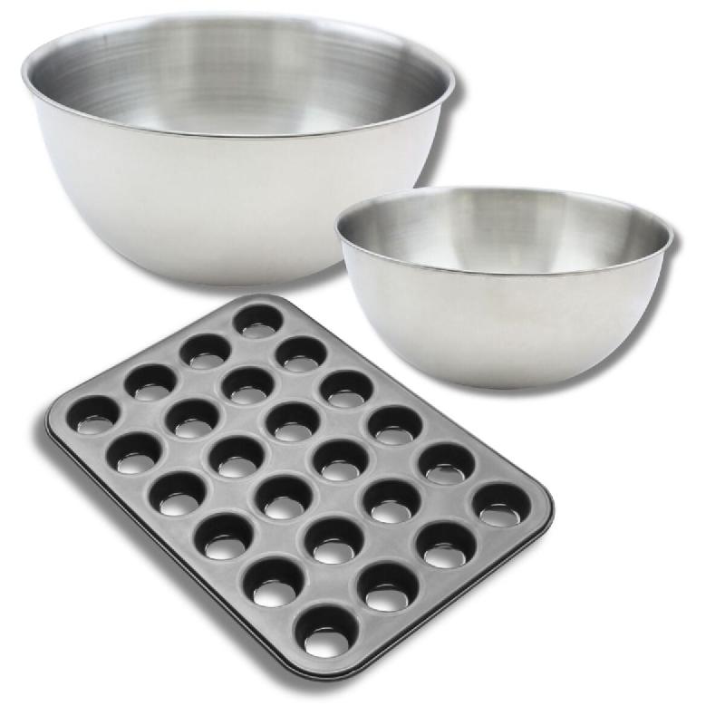 Ensemble comprenant 1 moule muffin 24 empreintes, 1 spatule Zenker et 2 bols à mixer en inox Fackelmann - noir métal 3176239936483