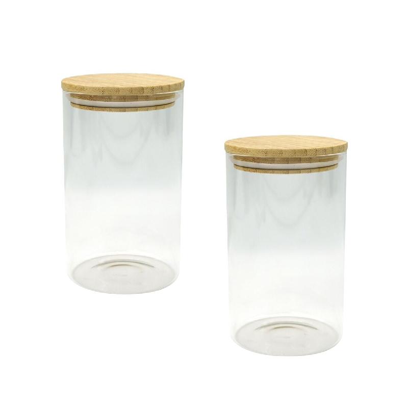 Ensemble de 2 Boîtes de conservation en verre 1,15L avec couvercle en Bambou Fackelmann Eco Friendly - gris verre 3176239934267