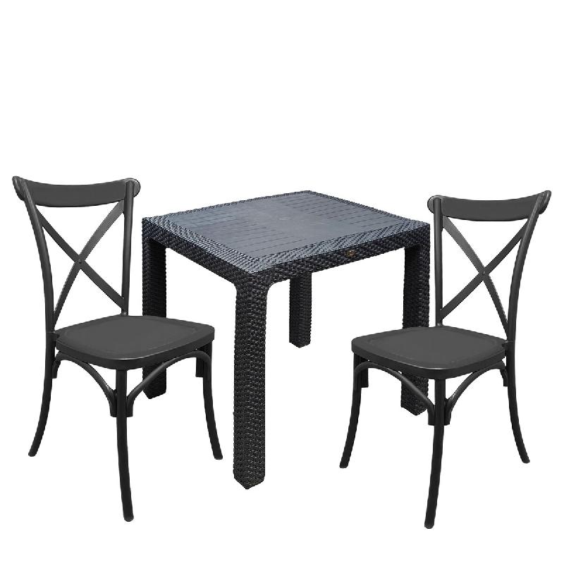 Ensemble de 2 chaises en résine noire + table en polyrotin noir - noir 8053632010888