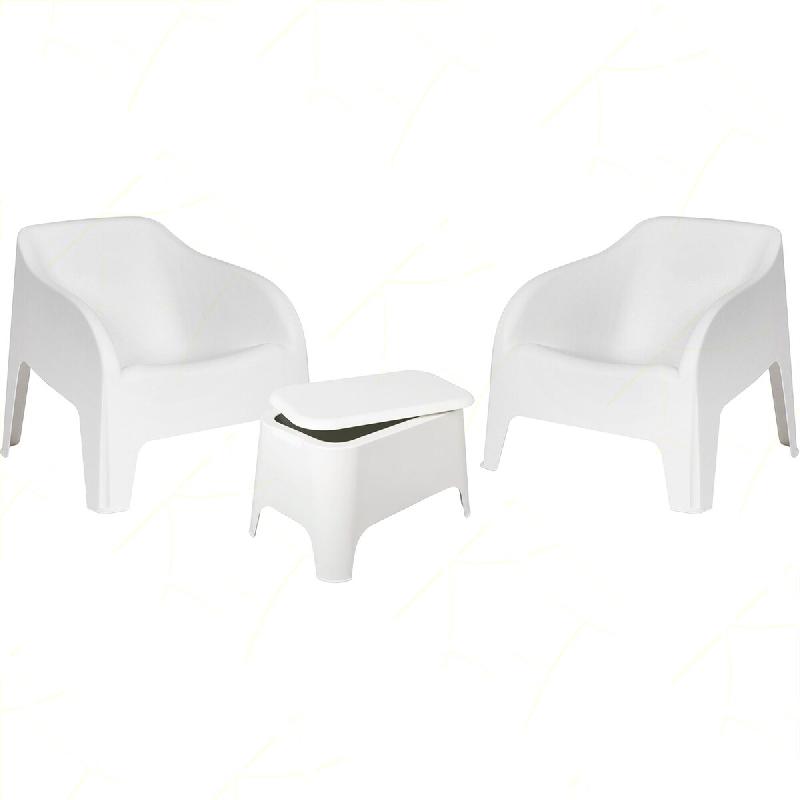 Ensemble de 2 fauteuils Petra blancs avec table de rangement - blanc plastique polypropylène 8050054388373
