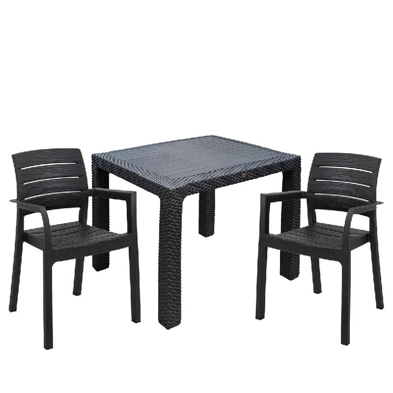 Ensemble de 2 fauteuils Recanati anthracite + table en polyrotin noir - noir 8053632010840