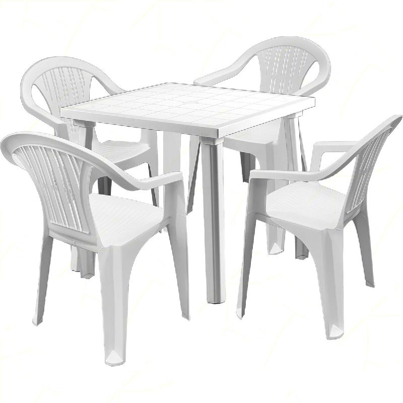 Ensemble de 4 fauteuils Ratak Sicignano avec table d'appoint carrée 80x80 cm, blanc - blanc plastique polypropylène 8050054389066