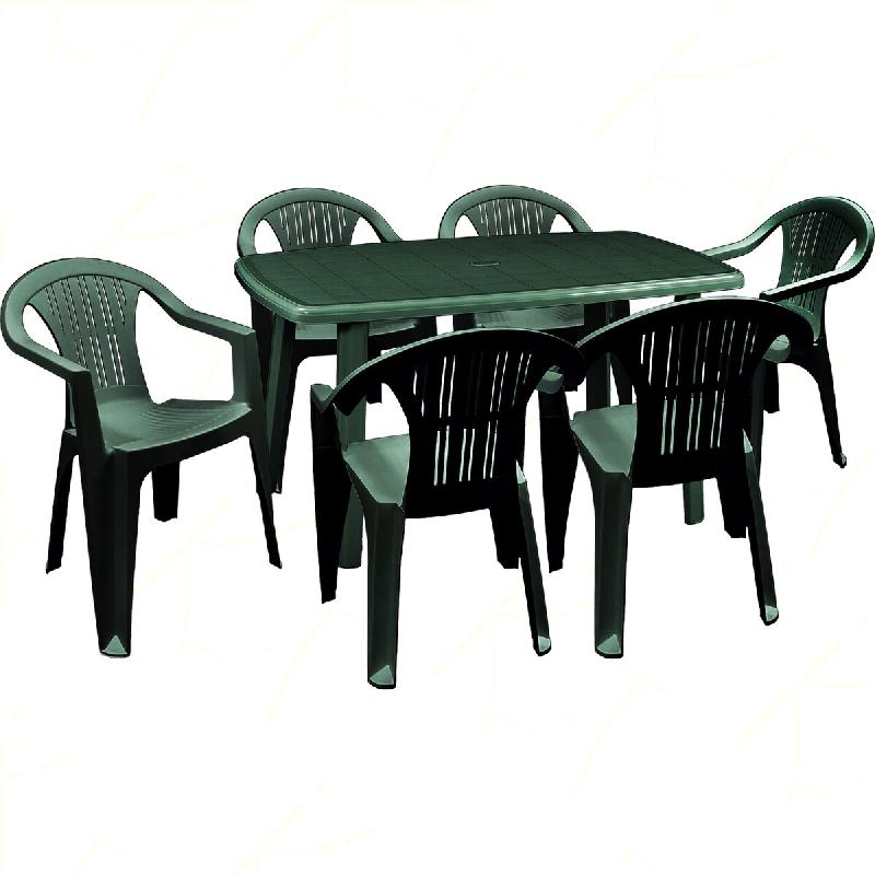 Ensemble de 6 fauteuils Ratak avec table ovale rectangulaire vert Cayman - vert plastique polypropylène 8050054389097