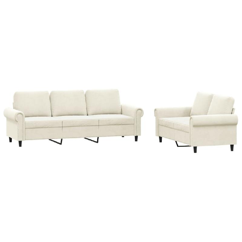 Ensemble de canapés 2 pcs avec coussins Crème Velours Modèle Quermelion - 8721012072251