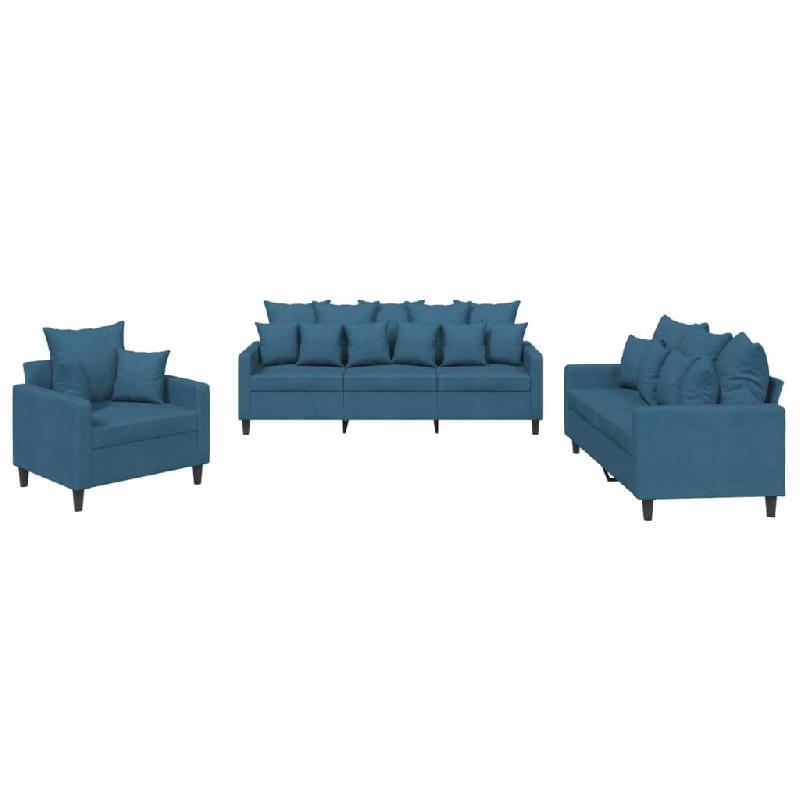 Ensemble de canapés 3 pcs avec coussins Bleu Velours Modèle AbriNova 74 - 8721012066564