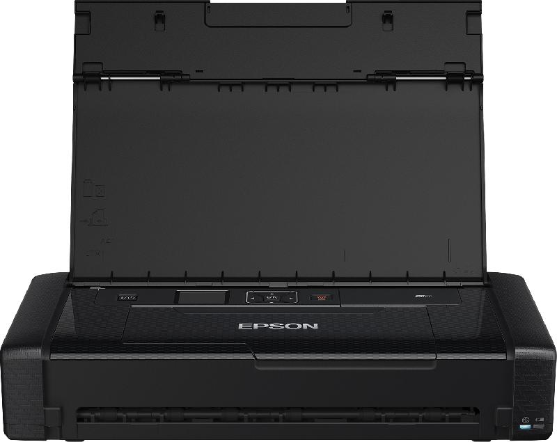 P>Epson WorkForce WF-110W. Couleur, Nombre de cartouches d'impression: 2. Résolution maximale: 5760 x 1440 DPI. Taille de papier de série A ISO maximum: A4. Vitesse d'impression (noir, qualité normale, A4/US Letter): 14 ppm. Écran: LCD. Wifi. Couleur du produit: NoirImpression mobileLa WF-110W est l'imprimante jet d'encre A4 sans fil la plus petite et la plus légère d'Epson. Elle mesure 309 x 154 x 61 mm seulement pour un poids de 1,6 kg. Imprimez sans câble d'alimentationUne batterie intégrée, rechargeable sur un simple port USB, vous offre la capacité d'imprimer 50 pages. Pour plus de flexibilité encore, une batterie externe en option vous permet d'imprimer jusqu'à 410 pages2.PratiqueImprimez sans fil avec des solutions compatibles telles que Google Cloud Print et Epson Connect. Utilisez l'appli Epson iPrint1 pour imprimer sans fil depuis un smartphone ou une tablette. Vous pouvez même recevoir des fichiers à imprimer où que vous soyez dans le monde via Epson Email Print1.Impressions de qualité supérieureLa qualité de cette imprimante transparaît dans la qualité de ses impressions. En fait, c'est la seule imprimante portable qui utilise des encres pigmentaires pour toutes les couleurs afin de fournir des impressions durables, résistant au maculage.EfficaceLa WF-110W offre une vitesse d'impression ISO de 7 ppm en monochrome et de 4 ppm en couleur3 L'autonomie de ses consommables peut atteindre 250 pages en monochrome et 200 pages en couleur4. L'écran LCD de 3,7 cm permet de configurer rapidement une connexion Wi-Fi sans passer par un ordinateur, mais il permet aussi de contrôler les niveaux d'encre.