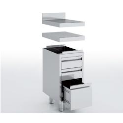 Meuble neutre avec tiroirs série 600 - Sans dosseret - Inox AISI-304 18/10 satiné - Dimensions : 400 x 600 x 850 mm - Meuble comprenant 3 tiroirs, 2 prof. 100 mm et 1 prof. 200 mm