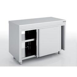 Meuble neutre fermé série 700 - Sans dosseret - Inox AISI - 304 18/10 satiné - Dimensions : 1800 x 700 x 850 mm - Portes coulissantes suspendues silencieuses avec guide de portes sur roulements à billes - Dessus et étagère intérieure renforcés par omega - Etagère intérieure réglabl