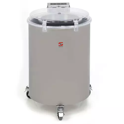 Essoreuse RÉF. SMC06 - ET - Essore tous genres de légumes en très peu de temps, grâce à sa vitesse élevée (900 tr/mn), tout en garantissant un produit fini de qualité. L'essoreuse est dotée d'un moteur triphasé alimenté par un variateur électronique de grande fiabilité. Grâce à cela,