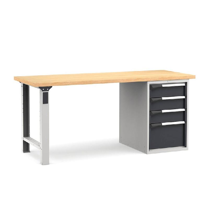 Etabli d'atelier NOVALP longueur 2000 mm, réglable en hauteur composé de : - > Plateau bois en lamellé - collé hêtre, poncé 2 faces, de profondeur 750 mm - > 2 pieds réglables en métal, de coloris Gris Ral 7035 + Gris anthracite Ral 7016 - > 1 bloc Novalp 1 tiroir hauteur 100 mm, Gri