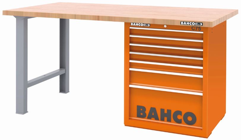 Établi usage intensif avec plateau bois, 2 pieds et 6 tiroirs de rangement - 1495KH6WB15TW - Servante Bahco 1475K6 incluse - Capacité 1500 kg