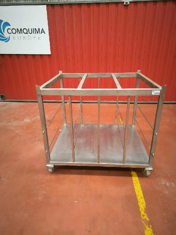 Étagère d'occasion sur roulettes en acier inoxydable.