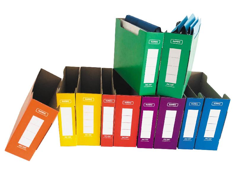 Étui de rangement prêt à l'emploi indispensable pour la gestion de vos dossiers au quotidien. - 5 couleurs vives : bleu, jaune, parme, rouge et vert. - 2 dos disponibles : 6 cm et 9 cm. - Étui en carton compact lui assurant une grande rigidité et un bon maintien même à moitié plein. -