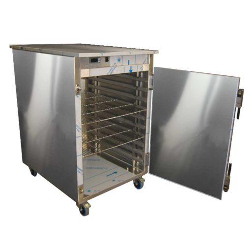 CCE10 - DG - Chariot de maintien en température Dimensions (LxPxH) (mm) : 799x876x1190 Alimentation : Monophasé Température (°C) : 0 - 90 Volume (m3) : 0.85