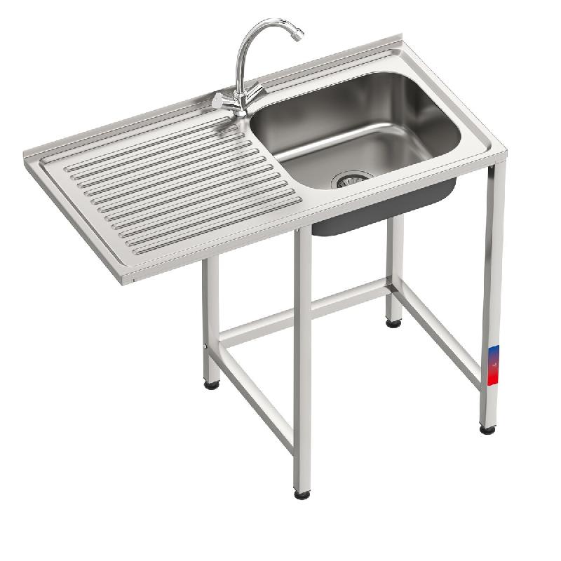 Évier en acier inoxydable avec plan en porte-à-faux, robinet inclus, cuve à droite | 850 x 1000 x 500 mm | Gasfrit - inox gfy044g