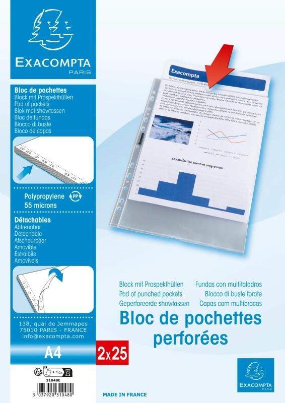 Exacompta Lot de 20 Sachet de 2 blocs de 25 pochettes perforées A4, polypro lisse 5,5/10e - 3037920310480