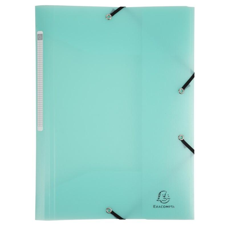 Chemise 3 rabats 24x32 pour A4, élastiques de fermeture et étiquette - PP translucide 5/10e - Marque : Exacompta - Délai de livraison : 5 - 7 jours ouvrés
