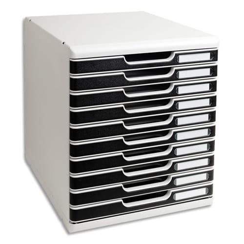 Exacompta Module de classement Modulo gris lumière/noir - 10 tiroirs en PS haute qualité - Format A4+ - L28,8 x H32 x P35 cm
