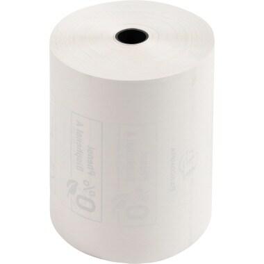 Bobine en papier offset, chimique et thermique - Format de la bobine : 80 mm de laize (largeur) et 56 mm de diamètre. - Métrage : 44 m (+ ou - 2 m). - Mandrin : standard de 12 mm. - Grammage : 48 g. - Caractéristiques principales : - Papier garanti sans Bisphénol A, conforme à la réglem