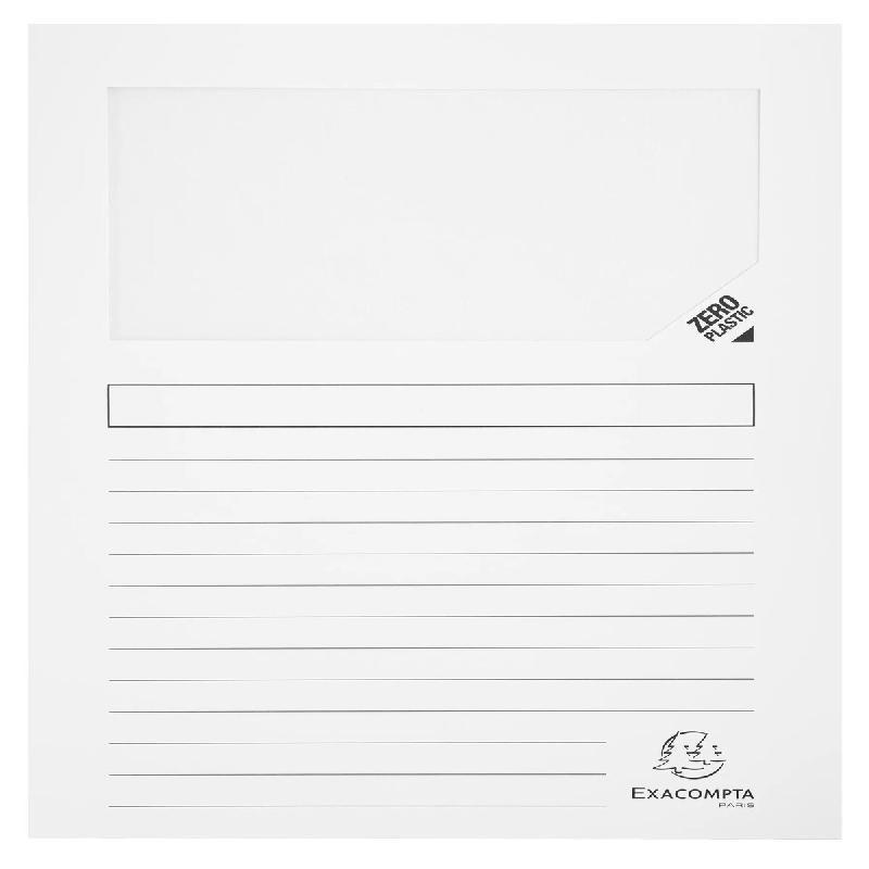 Exacompta - Réf. 50151E - Paquet de 100 chemises à fenêtre sans plastique SUPER 160 g/m² - dim 22 x 31 cm pour A4 - blanc - blanc en carton 50151E