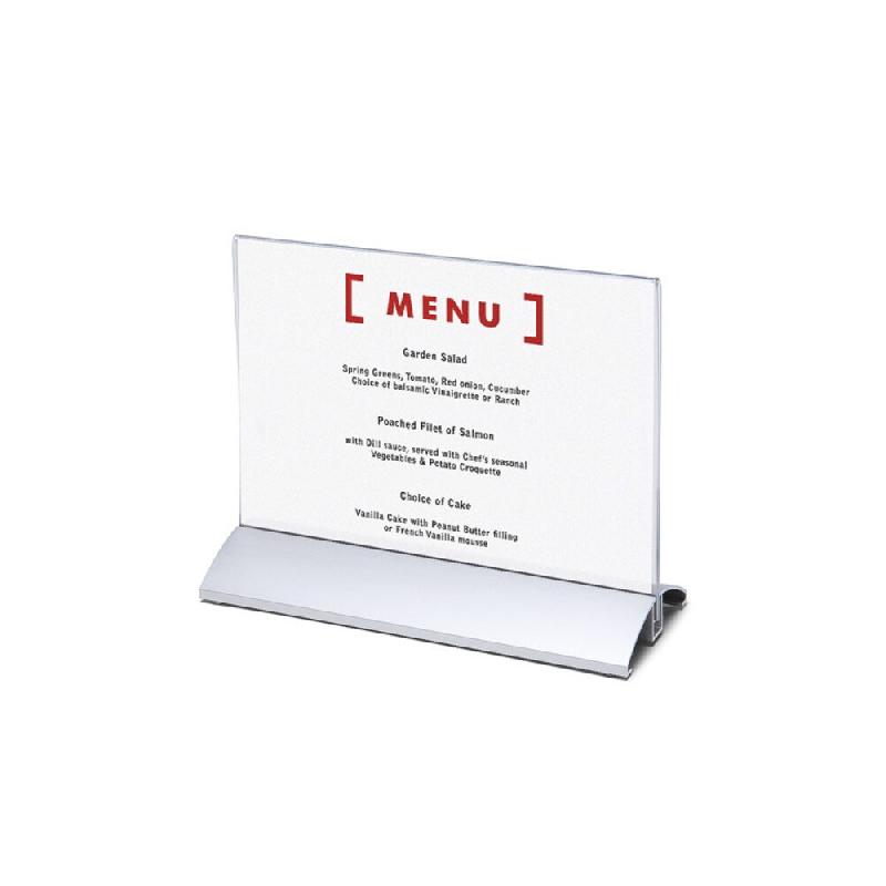 Porte - menu Swing WingPorte - menu de table - Socle en aluminium anodisé à ouverture permettant de "pincer" un support en plexi transparent. - Le support en plexi permet d'insérer une feuille de papier. - Idéal pour : - Présenter vos menus - Mettre en avant vos offres promotionnelles -