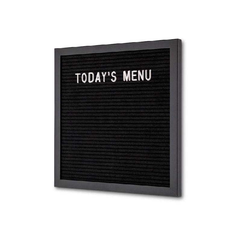Élégant et vintage : notre tableau à lettres noir avec cadre noir. Affichez votre menu, un message de bienvenue ou une citation. Les lettres sont faciles à positionner et à ajuster pour modifier le contenu rapidement et simplement. Comprend 500 lettres. Les cadres sont disponibles en trois tailles. Les deux plus petites peuvent être accrochées ou posées sur un comptoir. La plus grande est uniquement destinée à être accrochée. Idéal pour les salles à manger, les restaurants, les magasins, les boutiques et les bureaux.